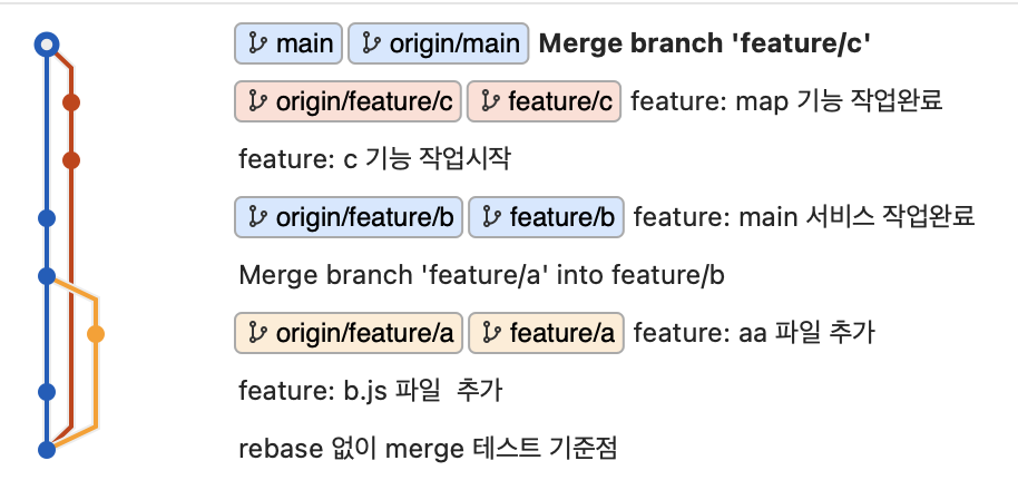 같은 과정을 rebase없이 했다면
