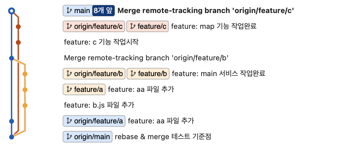 브랜치가 굉장히 깔끔하게 정돈된것을 볼수있다