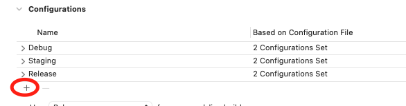 - Project > info > Configuration > +