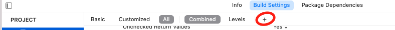Project > Build Settings > + Add user defined setting을 클릭